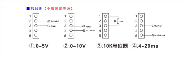 ① 它能接受1-5V,0-10V,4-20mA及手动10K电位器输入.