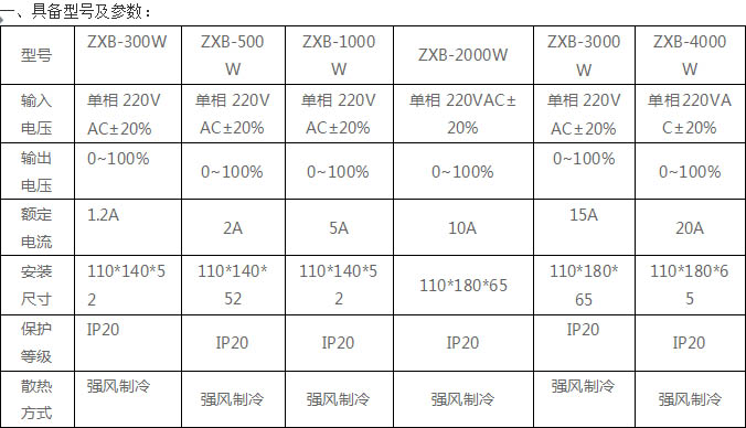 该产品的用途是对市电进行连续电压调节或者功率调节,其最显著的特点是:
