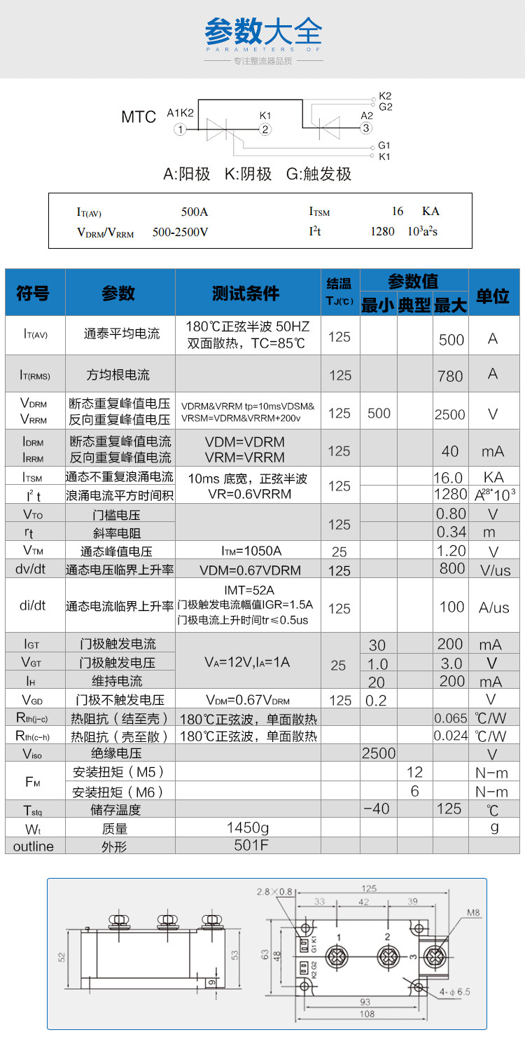 6、其它模块,这里指的是电焊机模块,分为整流以及可控两类,整流电焊机模块国内型号:MDG和MDY,其中MDG是共阳的,MDY是共阴的,电流50-300A,电压:100-1600V。电焊机可控模块国内型号:MTG(可控的电焊机模块只有共阳的),电流50-200A,电压:100-1600V。